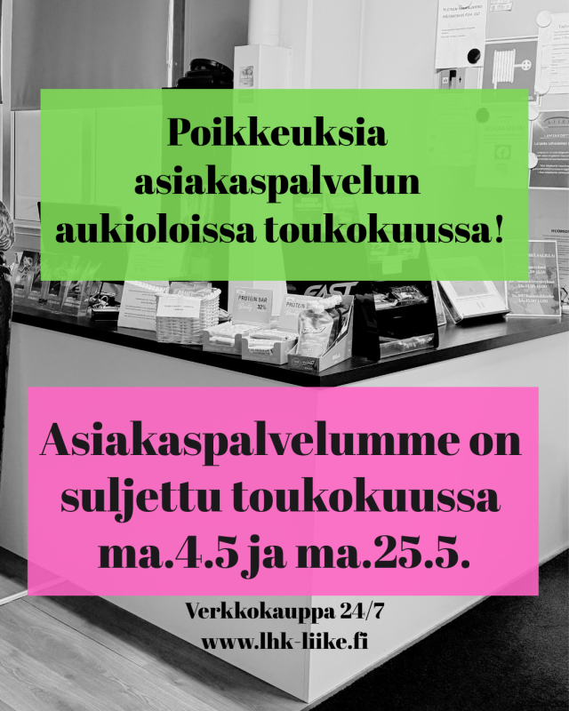 Asiakaspalvelu suljettuna maanantaina 6.4. Kuntosali normaalisti 04.30-24.00 läpi pyhien ☀️